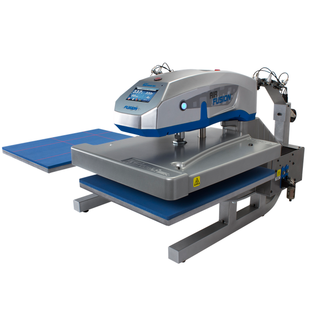 With two heat printing stations, the Dual Air Fusion IQ heat press increases efficiency by allowing threading and layout on one station while the other is being pressed. It's perfect for high-volume operations and for DTG printing – set one station for pre-treatment, the other for post-curing.